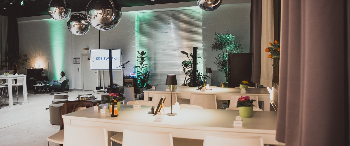 Bei Kreiswerk52 finden Sie nicht nur die passende Location für Ihre Veranstaltung - sondern auf Wunsch auch die passende Eventagentur direkt mit dazu. Denn im selben Haus sitzt Eventvoll., eine nachhaltige Agentur für B2B-Events.